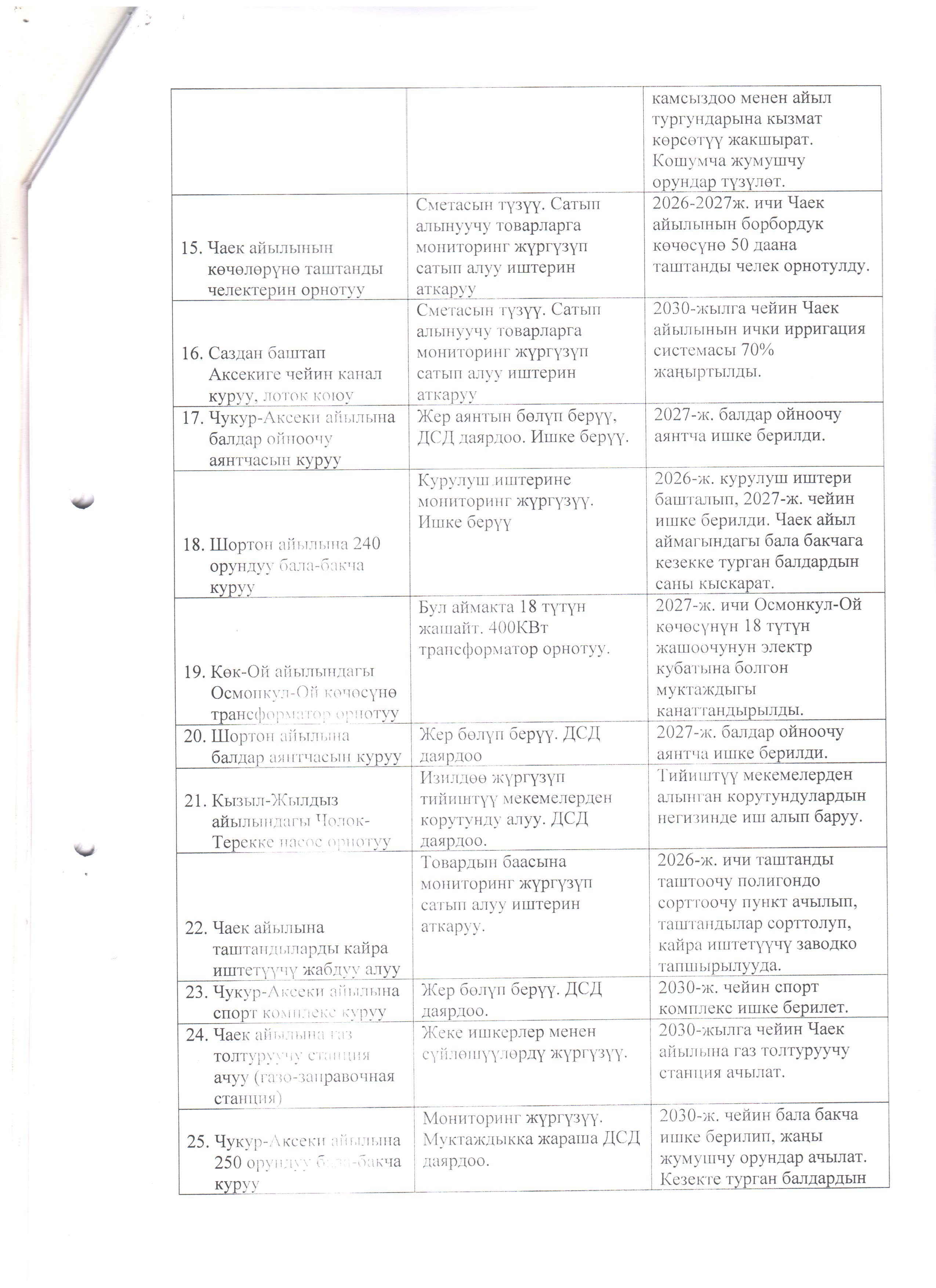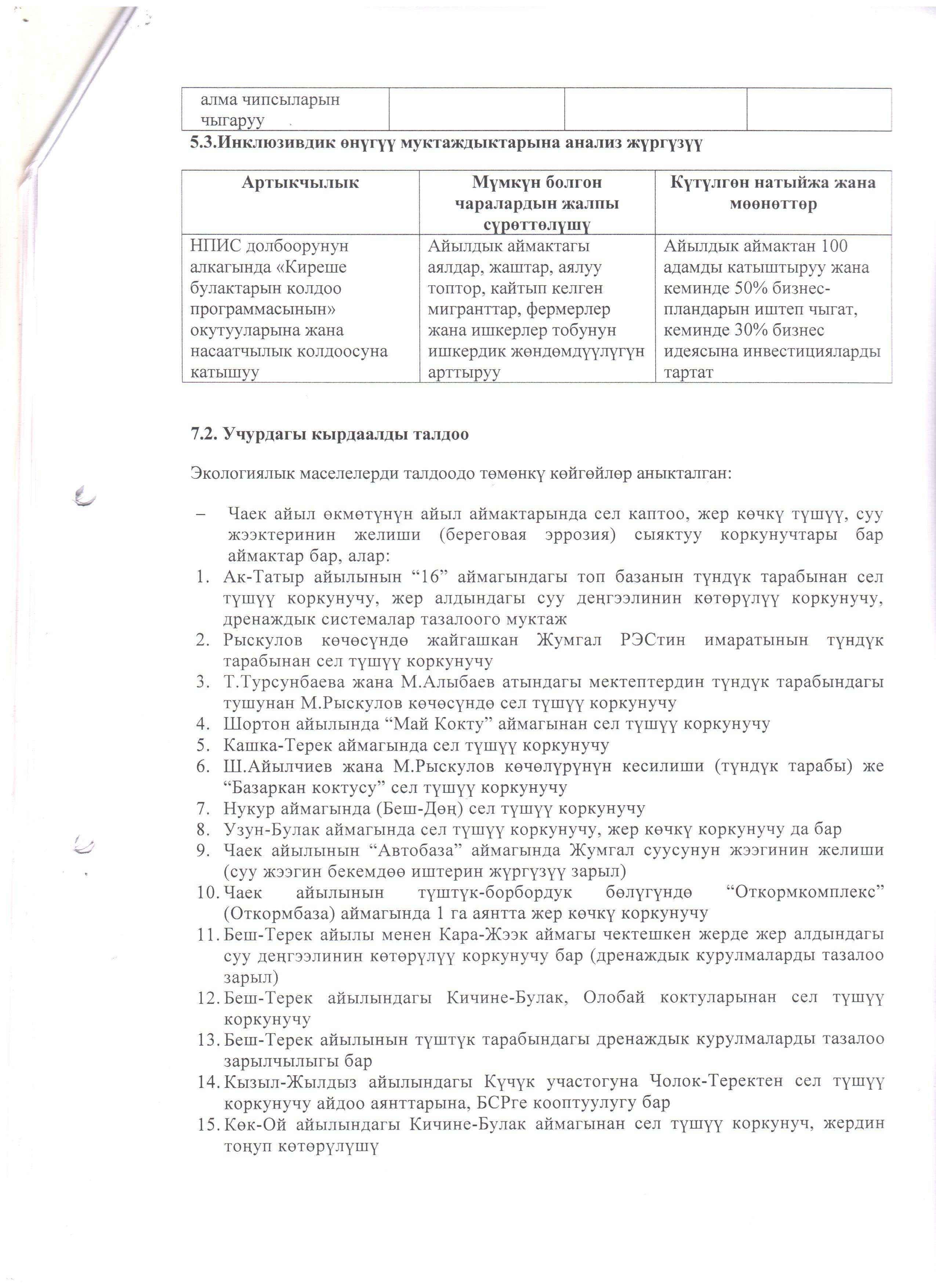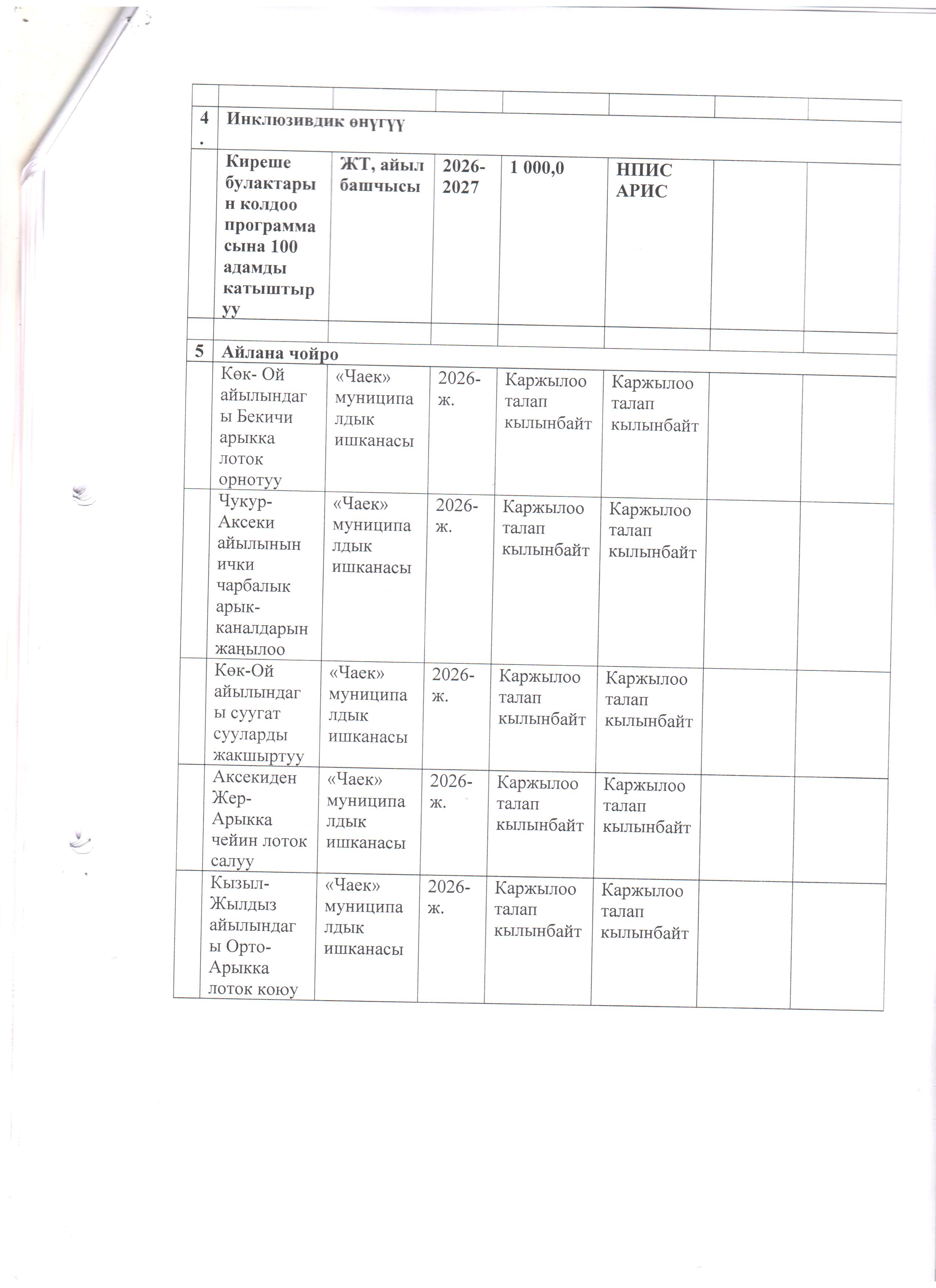 Чаек айыл аймагынын 2026-2030-жылдарга карата социалдык-экономикалык өнүгүү программасына (СЭӨПко) толуктоолорду киргизүү жана Коомдоштуктардын демилгеси боюнча улуттук долбоордун алкагында каржылоого сунушталган чакан долбоор тууралуу