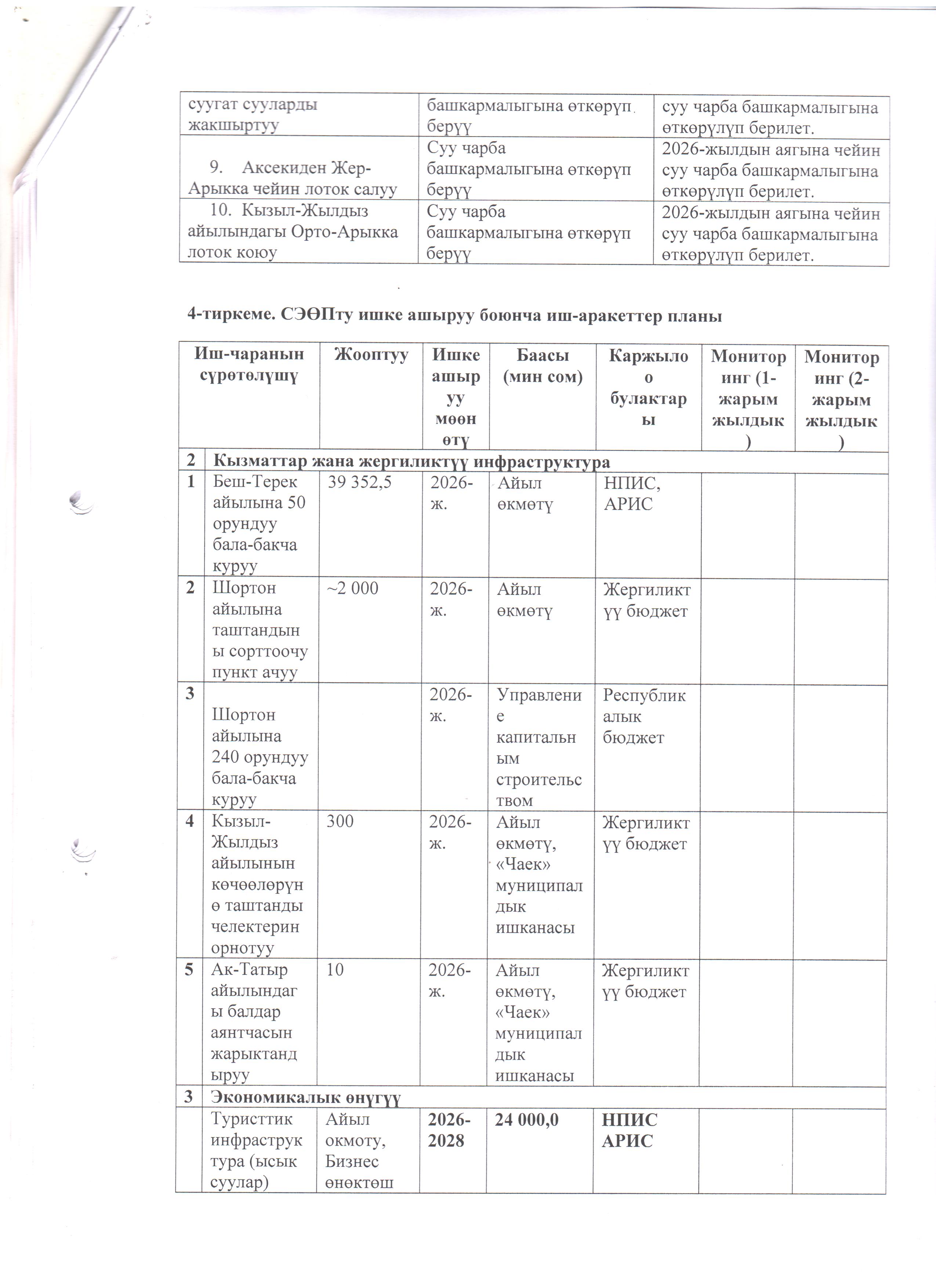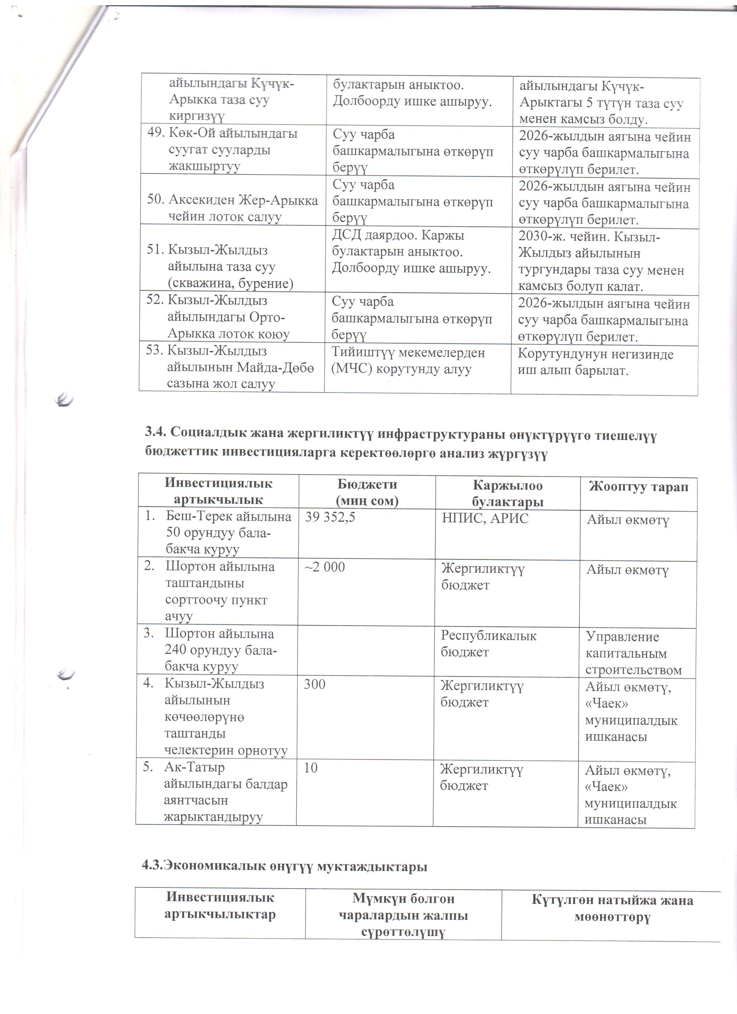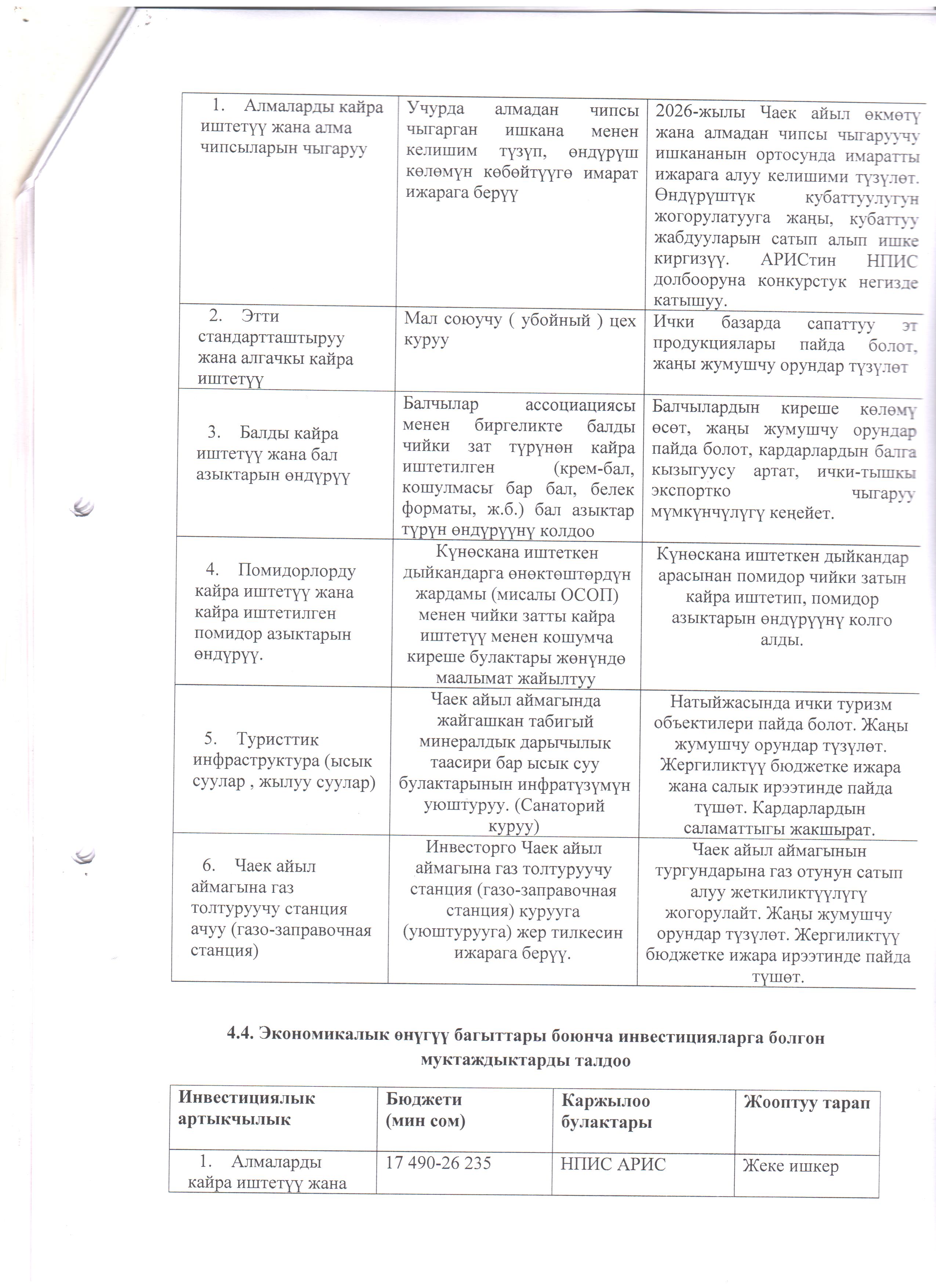 Чаек айыл аймагынын 2026-2030-жылдарга карата социалдык-экономикалык өнүгүү программасына (СЭӨПко) толуктоолорду киргизүү жана Коомдоштуктардын демилгеси боюнча улуттук долбоордун алкагында каржылоого сунушталган чакан долбоор тууралуу