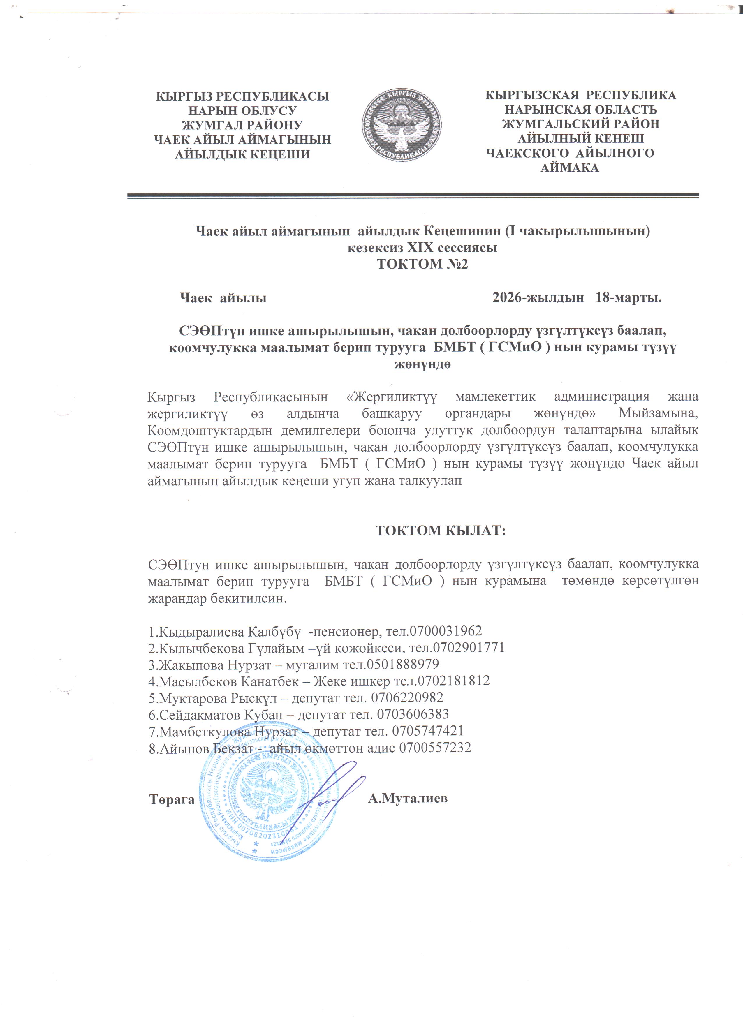 Чаек айылы 2026-жылдын 18-марты