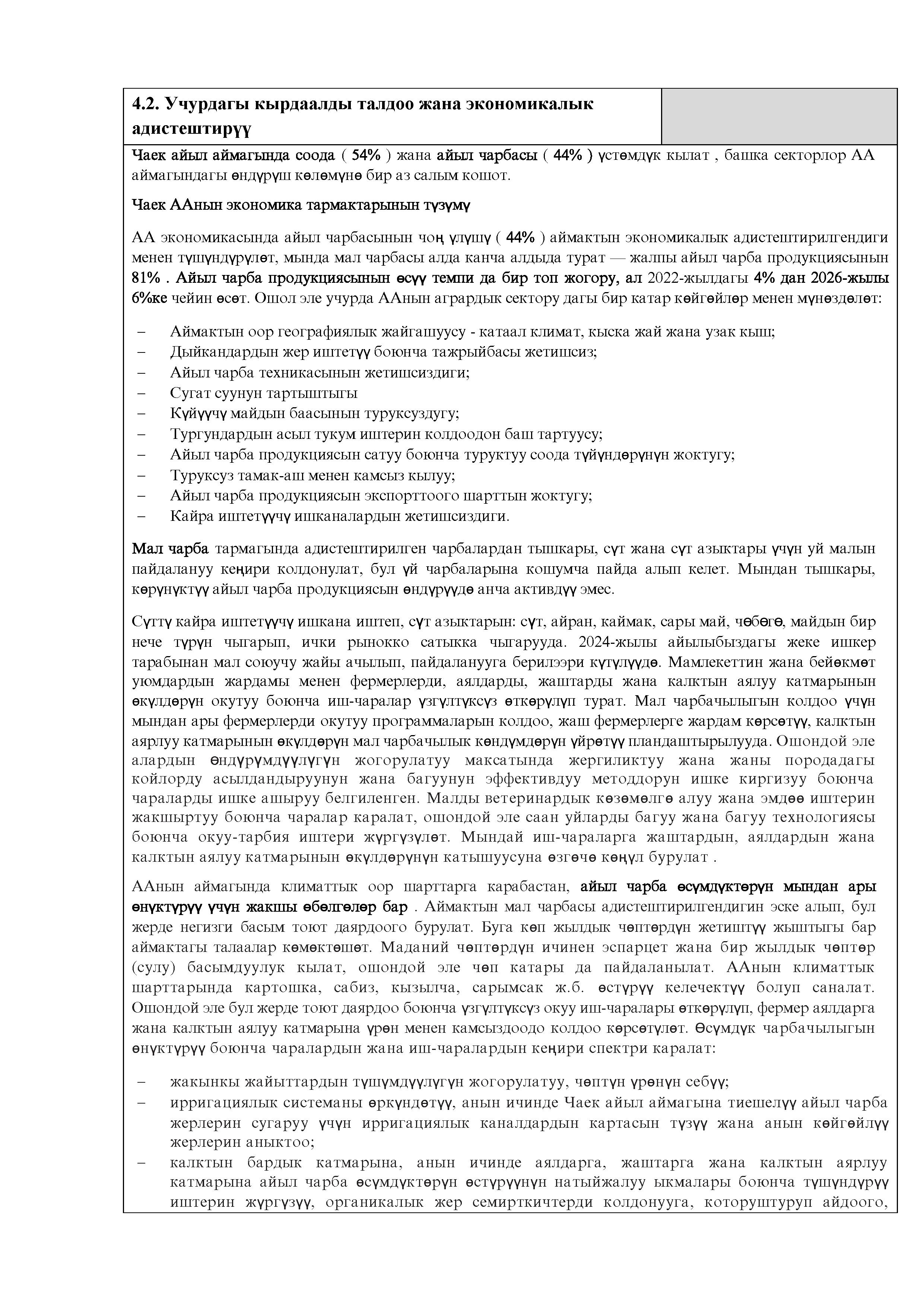 ЧАЕК АЙЫЛ АЙМАГЫНЫН 2025-2030-ЖЫЛДАРГА СОЦИАЛДЫК-ЭКОНОМИКАЛЫК ӨНҮГҮҮ ПРОГРАММАСЫ