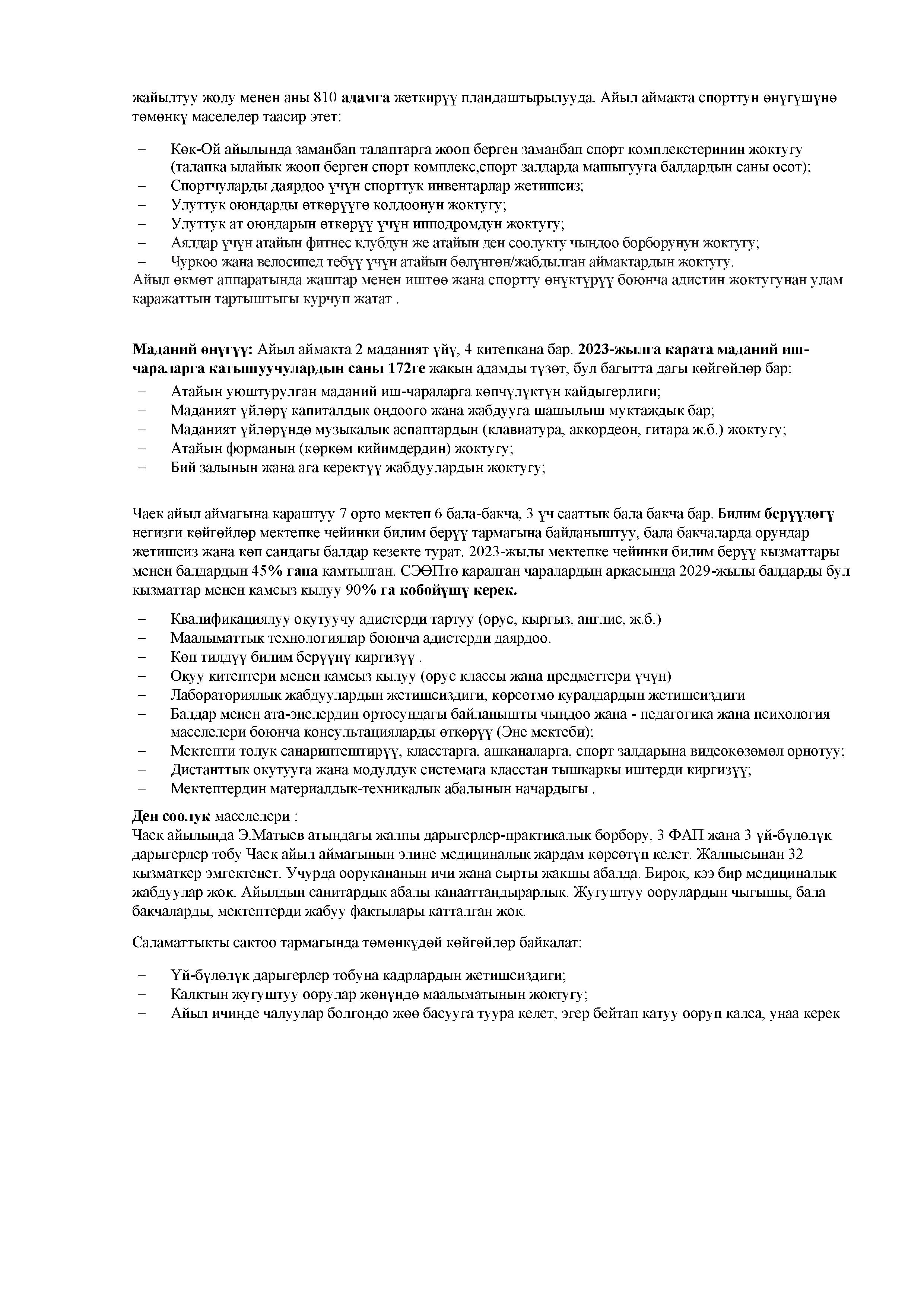ЧАЕК АЙЫЛ АЙМАГЫНЫН 2025-2030-ЖЫЛДАРГА СОЦИАЛДЫК-ЭКОНОМИКАЛЫК ӨНҮГҮҮ ПРОГРАММАСЫ